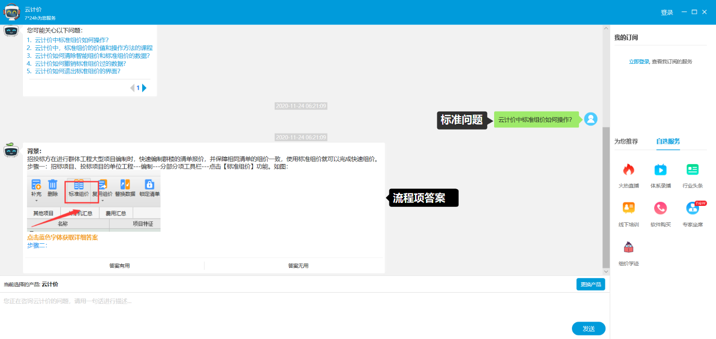(2)输入标准问法(即流程名称),此时系统会对知识库内已存在的类似问题进行检索,如有相同/相似问题会给出提示;