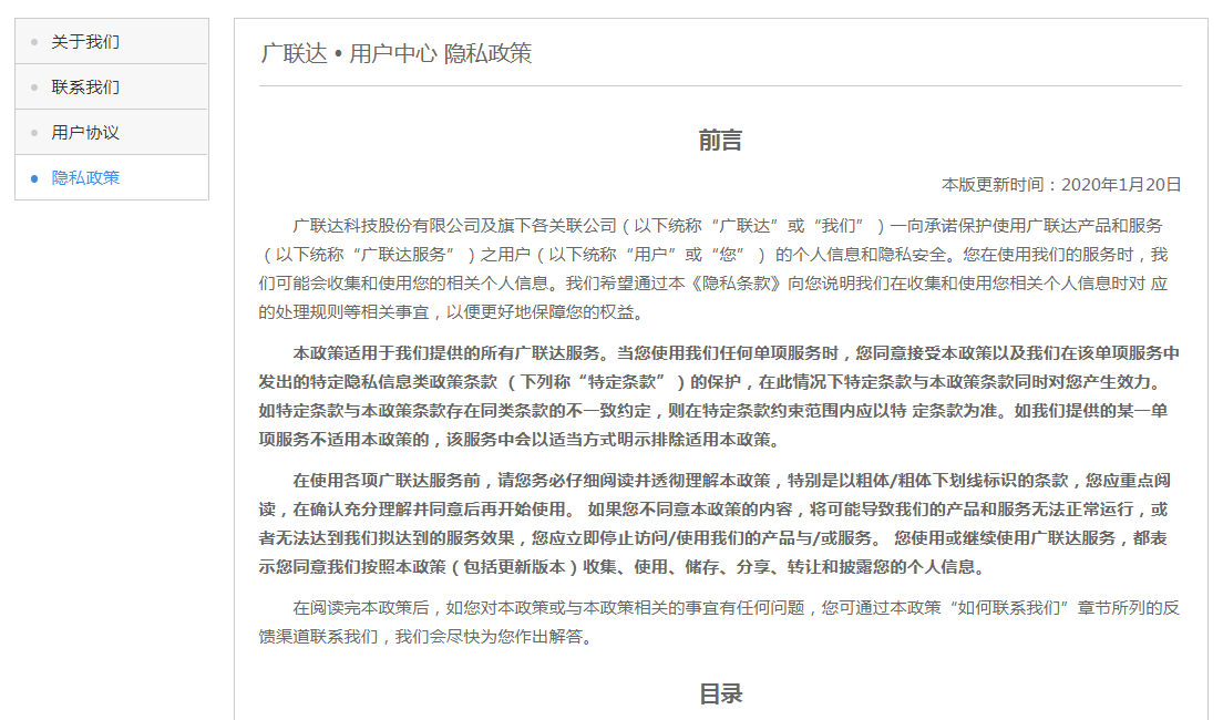 - 合规:满足隐私保护条例、GDPR等法律法规要求,维护公司法务部推出并持续修正的用户协议和隐私政策,并提供页面和API接口供各产品线进行合规改造。