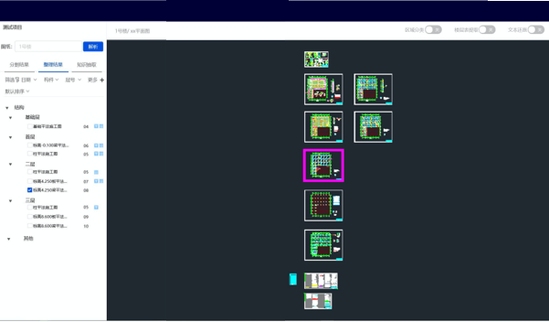 图纸特征结构化服务,可对套图中的每张子图进行特征提取,通过标签方式索引图纸,从多个维度描述图纸,帮助用户快速了解图纸内容。